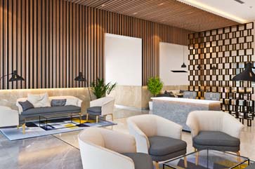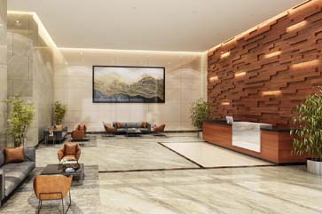 Lobby Finish: Italian Marble flooring, Pop Ceiling and combination of tiles/stone and Painted wall as per architect design